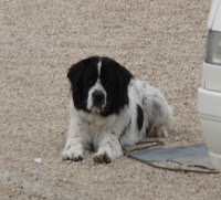 Across the way is a German motorhome, and they have a doggy travelling companion, but its hard to believe he's bigger than me, some sort of Mountain hound, grey and white, I not too sure, but they say he likes to play, but we did not get time to find out, we just looked at each other from afar. We also are next to an English guy who we have a long chat with. He spends a lot of time in Spain, so had quite a few tips. One is a mobile broadband service, which dads are now going to look at. especially as its €10 to log on here, so we will not be uploading today, I think I heard dad say something about a guy called Dick Turpin. Alan said the owner looked like Michael Winner with bling ! there's also a moan about the fact you only got a dish of nuts with your drink in the bar if you are Spanish !! do they care, NO they have better nuts of their own !